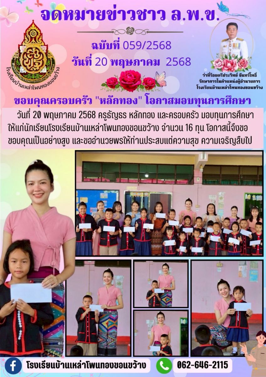 ขอบคุณครอบครัวหลักทอง โอกาสมอบทุนการศึกษา